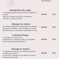 Massage d'une grande qualité, Natacha sait s'adapter à nos besoins avec justesse et être à l'écoute de notre corps. Je ne suis jamais ressortie aussi détendue d'un massage ! On se sent dans un véritable cocon et il me tarde d'y retourner dès que possible !